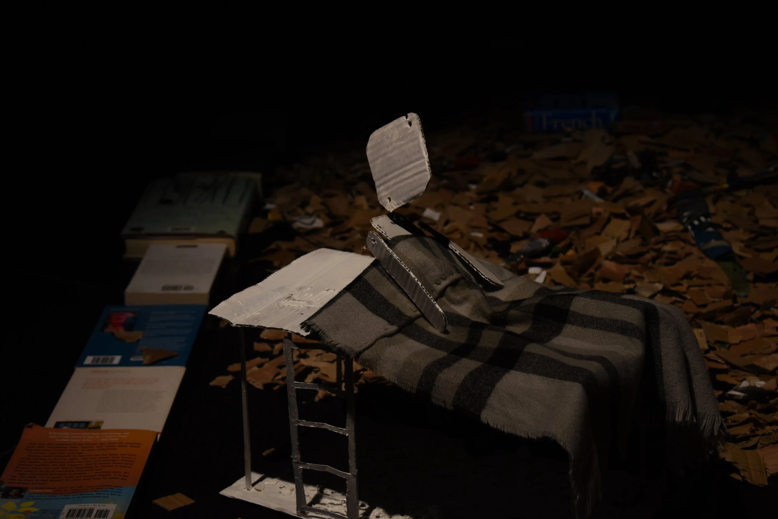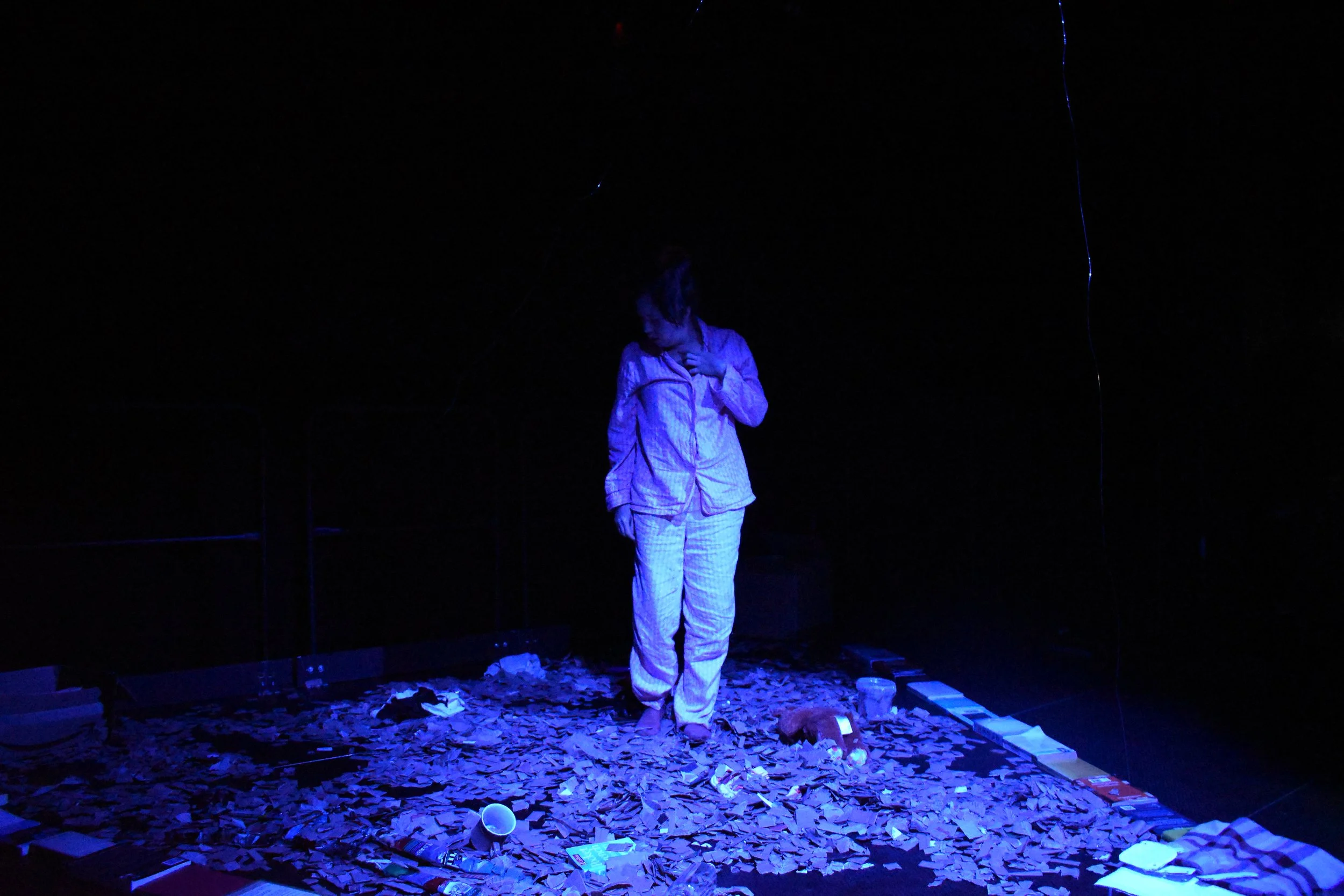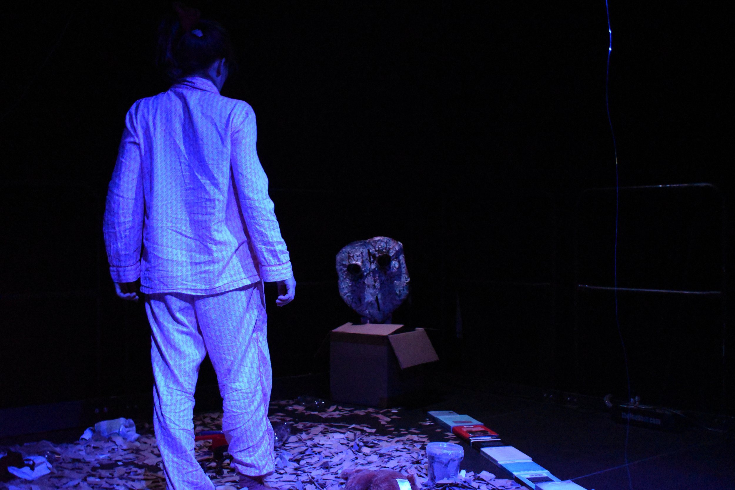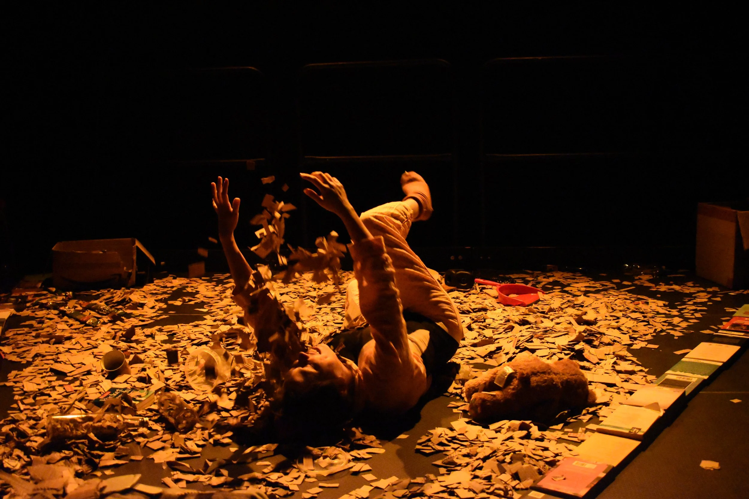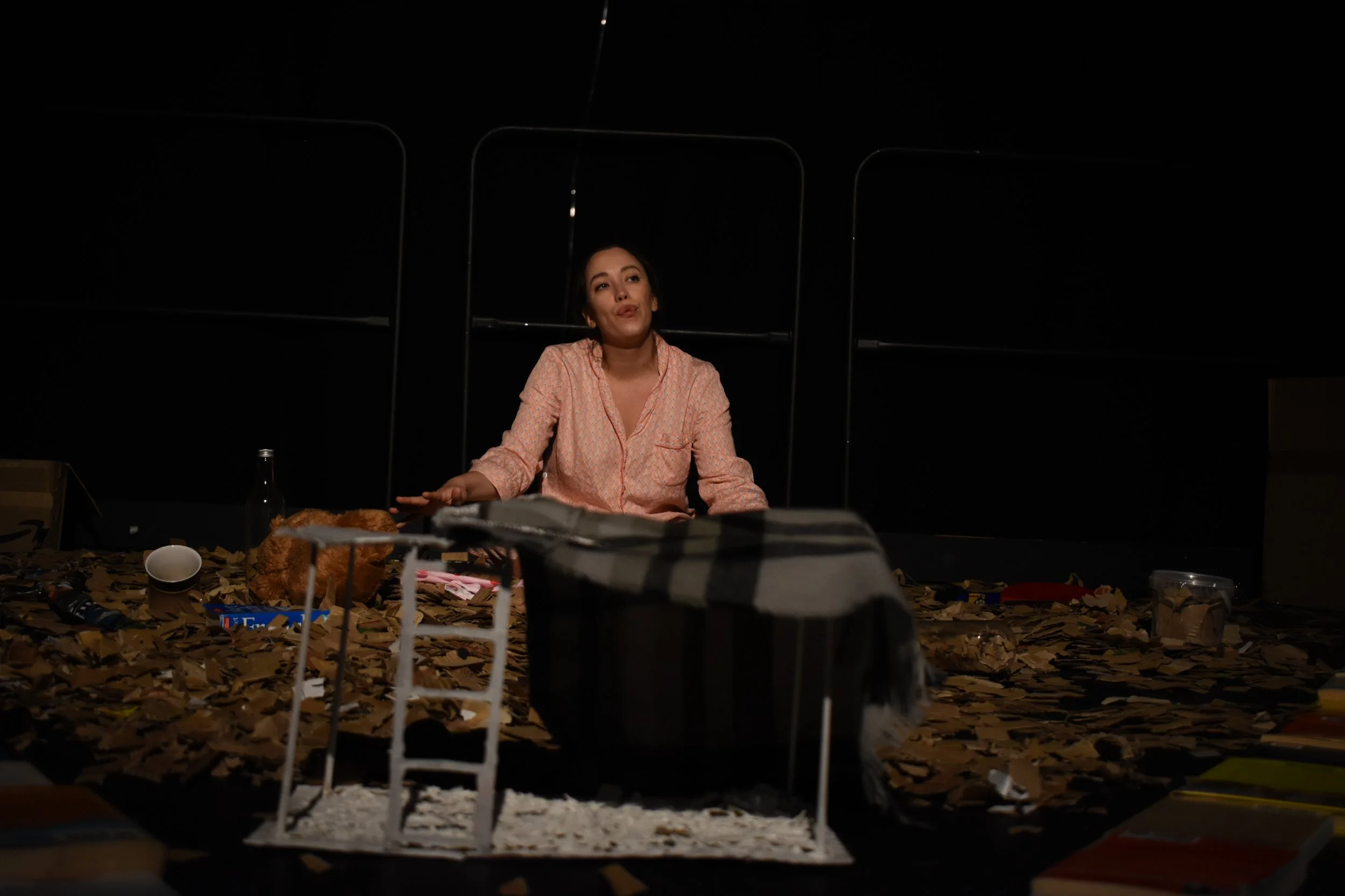 “Day at the Beach is a disturbing experience, destined to make the comfortable squirm in their seats. Strange things happen onstage as sand pours into the flat, flailing objects unbury themselves like marionettes and scrappy puppets built from crisp packets rise from the cardboard sea. [It] is a piece with great potential, full of sharp moments to jab at you amidst Miranda Barrett’s smooth soliloquy.”